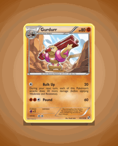 Gurdurr from the Black White set is an uncommon card numbered 60 with 80 HP. This sturdy Pokémon features the straightforward attack Pound, making it a reliable choice in battle. Its design reflects a solid, hardworking character within the set.