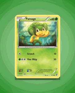 Pansage is a Common Pokémon from the Black White set, numbered 7. It has 60 HP and features the attack Vine Whip. This card offers a straightforward addition for collectors focusing on early Black White releases.