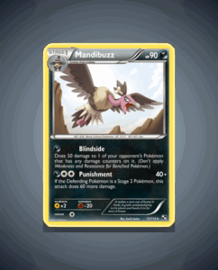 Mandibuzz from the Black White set is a rare card with 90 HP. It features the attack Punishment, offering strategic options in battle. This card is numbered 73 in the set.