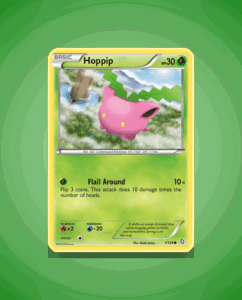 Hoppip is a Common Pokémon card from the Dragons Exalted set, numbered 1. It has a modest 30 HP and features the attack Flail Around. This card offers a simple yet charming addition to any collection.