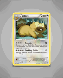 Bibarel from the Dragons Exalted set is an Uncommon card numbered 107 with 100 HP. This sturdy Pokémon features the attack Tumbling Tackle, showcasing its dynamic battle style. Its balanced stats make it a reliable addition to any collection.