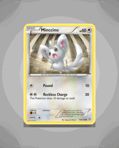 Minccino is a Common card from the Dragons Exalted set, numbered 109. It has 60 HP and features the attack Reckless Charge. This charming Pokémon offers straightforward gameplay with its simple but effective move.