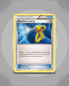 Devolution Spray is an Uncommon Trainer card from the Dragons Exalted set. It carries the number 113 in the series. This card adds strategic depth to gameplay with its unique effect. Collectors appreciate its role within the vibrant Dragons Exalted lineup.