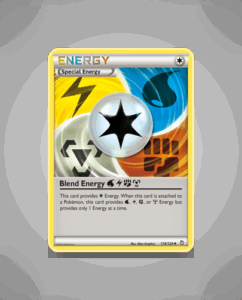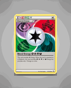 Blend Energy GrassFirePsychicDarkness is an uncommon card from the Dragons Exalted set, numbered 117. Its unique combination of Grass, Fire, Psychic, and Darkness energies makes it a versatile addition for collectors. This card stands out for its intriguing blend of types within the set.