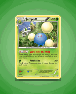 Jumpluff from the Dragons Exalted set is a Rare card with 90 HP. It features the ability Leave It to the Wind and the attack Acrobatics. This card is numbered 3 in the set.