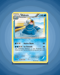 Walrein from the Dragons Exalted set is a Rare card numbered 31, boasting a solid 140 HP. This sturdy Pokémon features the attack Aurora Beam, adding a strategic edge to gameplay. Its presence in the collection offers both durability and a distinctive move.