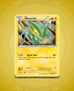 Electrike is a Common Pokémon card from the Dragons Exalted set, numbered 42. This lively Electric-type has 60 HP and features the attack Quick Turn. Its straightforward design makes it a solid choice for collectors seeking essential cards from the set.
