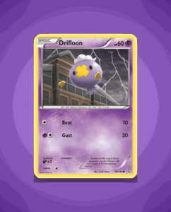 Drifloon is a Common card from the Dragons Exalted set, numbered 50. It has 60 HP and features the attack Gust. This airy Pokémon adds a light touch to any collection.