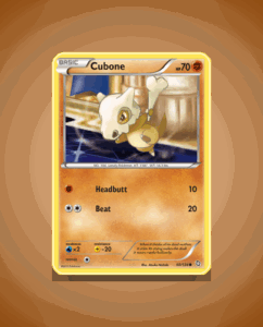 Cubone from the Dragons Exalted set is a Common card numbered 60 with 70 HP. This modestly durable Pokémon features the straightforward attack Beat. Its simple design fits well within the set’s dynamic lineup.