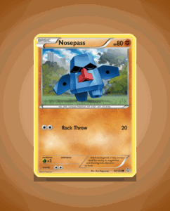 Nosepass from the Dragons Exalted set is a common Pokémon card numbered 62. It has a sturdy 80 HP and features the straightforward attack Rock Throw. This card offers a solid presence for collectors seeking reliable, no-frills options.