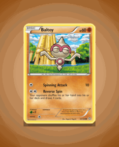 Baltoy is a Common Pokémon from the Dragons Exalted set, numbered 63. It has 60 HP and features the attack Spinning Attack. This modest card offers straightforward gameplay for collectors and players alike.