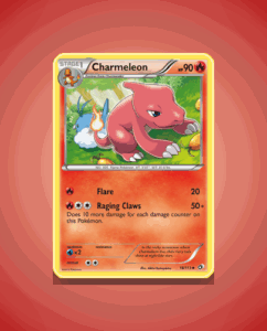 Charmeleon from the Legendary Treasures set is a striking Uncommon card numbered 18. This fiery Pokémon boasts 90 HP and features the dynamic attack Raging Claws. Its design captures the fierce energy characteristic of Charmeleon.
