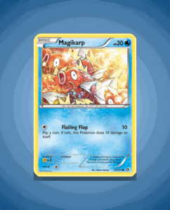 Magikarp from the Legendary Treasures set is a common card numbered 30. It has a modest 30 HP and features the attack Flailing Flop. This simple yet iconic Pokémon captures the essence of its in-game counterpart.