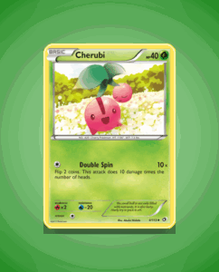 Cherubi from the Legendary Treasures set is a charming Uncommon card with 40 HP. This small Pokémon features the attack Double Spin, offering a straightforward option for gameplay. As card number 4, it holds a modest yet distinct presence in the collection.