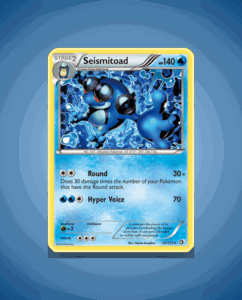 Seismitoad from the Legendary Treasures set is a Rare card numbered 42. It boasts a solid 140 HP and features the dynamic attack Hyper Voice. This card offers a robust addition to any collection.