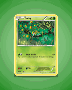 Snivy from the Legendary Treasures set is a common card numbered 6 with 60 HP. This sleek Pokémon features the attack Leaf Blade, offering a straightforward option for battles. Its design reflects the set’s vibrant style while maintaining a simple, effective presence.