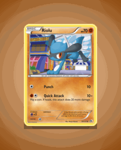 Riolu from the Legendary Treasures set is an uncommon card numbered 79. It features a modest 70 HP and a straightforward attack called Punch. This card offers a simple yet engaging addition to any collection.