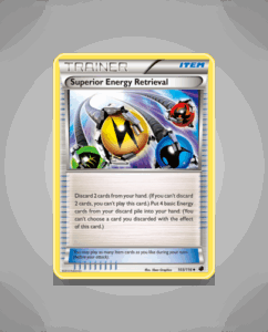 Superior Energy Retrieval is an Uncommon Trainer card from the Plasma Freeze set, numbered 103. Its design reflects the set’s icy theme, fitting seamlessly into strategic decks. Collectors appreciate its role in energy management within gameplay.