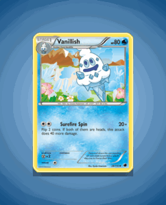 Vanillish from the Plasma Freeze set is an uncommon card numbered 28. It features 80 HP and a single attack called Surefire Spin. This card offers a straightforward yet engaging addition to any collection.