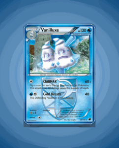 Vanilluxe from the Plasma Freeze set is a rare card numbered 29. This frosty Pokémon boasts 130 HP and features the attack ChillMAX. Its cool design fits perfectly within the icy theme of the set.