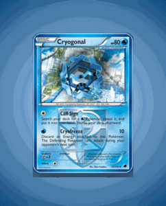 Cryogonal from the Plasma Freeze set is an uncommon Pokémon card with 80 HP. It features the attack Cryofreeze, adding a cool tactical element to gameplay. This card is numbered 30 in the set.