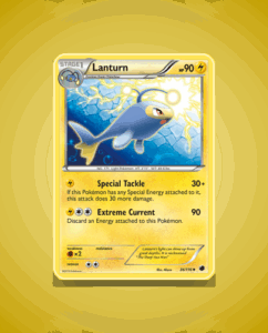 Lanturn from the Plasma Freeze set is an uncommon card numbered 36 with 90 HP. This aquatic Pokémon features the striking attack Extreme Current, adding dynamic energy to your deck. Its vibrant design captures Lanturn’s electric essence in a sleek, collectible form.