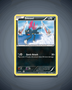 Sneasel from the Plasma Freeze set is a common card numbered 65. It has a lively 70 HP and features the attack Quick Attack. This straightforward design fits well into many decks seeking a nimble fighter.