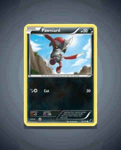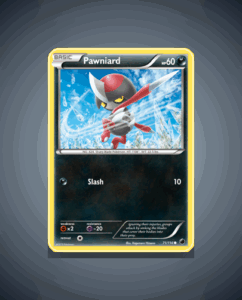 Pawniard from the Plasma Freeze set is a common card numbered 71. This sleek Pokémon boasts 60 HP and features the attack Slash. Its straightforward design makes it a solid addition for collectors focusing on this set.