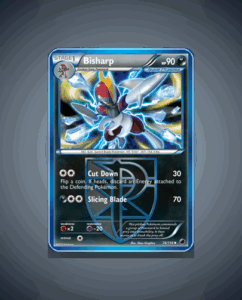 Bisharp from the Plasma Freeze set is an Uncommon card numbered 74. It boasts 90 HP and features the sharp attack Slicing Blade. This card offers a solid addition to any collection with its striking design.