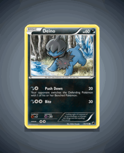Deino is a Common Pokémon from the Plasma Freeze set, numbered 75. It has 60 HP and features the straightforward attack Bite. This card offers a simple yet engaging addition to any collection.