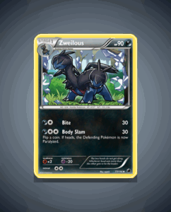 Zweilous from the Plasma Freeze set is an uncommon card with 90 HP. This fierce Pokémon features the straightforward attack Bite. It holds card number 77 in the collection.