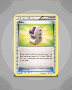 Ether is an Uncommon Trainer card from the Plasma Storm set, numbered 121. Its sleek design fits well within the thematic elements of the set. Collectors often seek it for its distinctive style and role in gameplay.