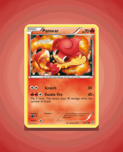 Pansear is a Common Pokémon card from the Plasma Storm set, numbered 19. It has 70 HP and features the attack Double Fire. This lively card offers straightforward gameplay with its focused fire-based move.