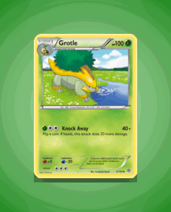 Grotle from the Plasma Storm set is an uncommon Pokémon card featuring 100 HP. It is card number 2 in the set and has a single attack called Knock Away. This card offers a straightforward addition to any collection focused on this set.