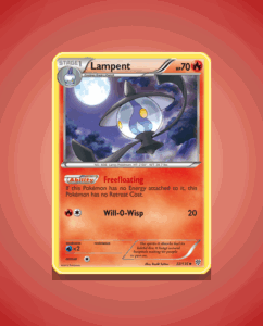 Lampent from the Plasma Storm set is an Uncommon Pokémon card with 70 HP. It features the intriguing ability Freefloating and the attack Will-O-Wisp. This card is numbered 22 in the set.