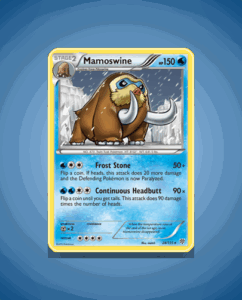 Mamoswine from the Plasma Storm set is a Rare card numbered 28. It boasts a sturdy 150 HP, making it a resilient choice in battle. Its sole attack, Continuous Headbutt, offers a straightforward offensive option. This card’s solid stats make it a notable addition to…