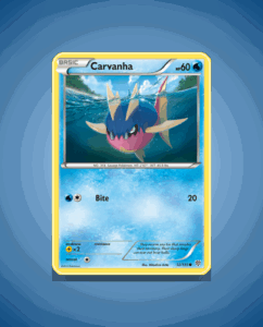 Carvanha is a Common Pokémon card from the Plasma Storm set, numbered 32. It has 60 HP and features the straightforward attack Bite. This card offers a simple yet dynamic addition to any collection.