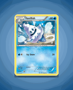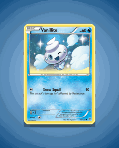 Vanillite from the Plasma Storm set is a common card numbered 35. This frosty Pokémon has 60 HP and features the attack Snow Squall. Its cool design fits well within the icy theme of the set.