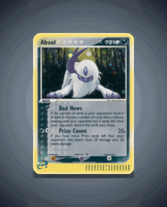 Absol from the Dragon set is a rare holo card numbered 1. It features 70 HP and a unique attack called Prize Count. This striking card offers collectors a vivid addition to their Dragon series lineup.