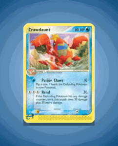 Crawdaunt is a Rare card from the Dragon set, numbered 13. This 80 HP Pokémon features the attack Rend, showcasing its sharp offensive capability. Its design captures the fierce nature of this water-type creature.