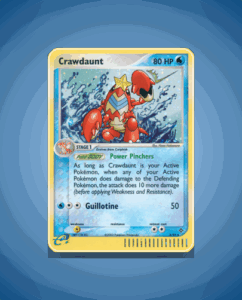 Crawdaunt from the Dragon set is a Rare Holo card featuring 80 HP. It boasts the ability Power Pinchers and a striking attack called Guillotine. This card is numbered 3 in its set, making it a distinctive addition for collectors.
