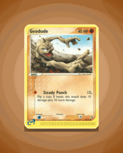 Geodude is a Common card from the Dragon set, numbered 56. This sturdy Pokémon has 40 HP and features the attack Steady Punch. Its straightforward design makes it a reliable choice for collectors focusing on this set.