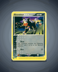 Houndour is a common card from the Dragon set, numbered 59. This Pokémon has 50 HP and features the straightforward attack Bite. Its design captures the fierce nature of this dark-type Pokémon.