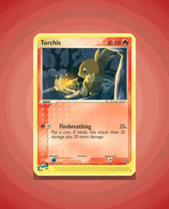 Torchic from the Dragon set is a common card numbered 77. This lively Pokémon has 50 HP and features the attack Firebreathing. Its straightforward design makes it a recognizable addition to any collection.