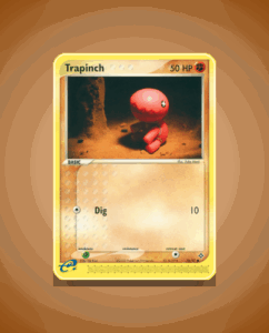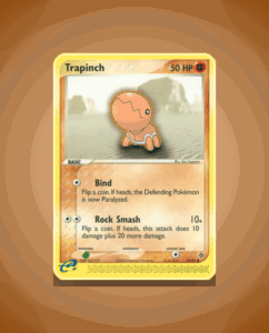 Trapinch is a Common Pokémon from the Dragon set, bearing the number 79. This lively creature has 50 HP and features the straightforward attack Rock Smash. Its simple yet effective design makes it a notable addition to any collection.