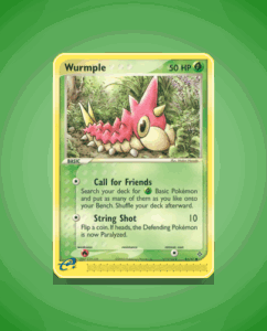 Wurmple is a common Pokémon card from the Dragon set, numbered 81. It has a modest 50 HP and features the attack String Shot. This card offers a straightforward addition to any collection.