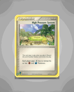 High Pressure System is an uncommon card from the Dragon set, numbered 85. Its design captures the intense atmosphere associated with powerful weather phenomena. This card holds a unique place in the collection despite lacking attacks or abilities.