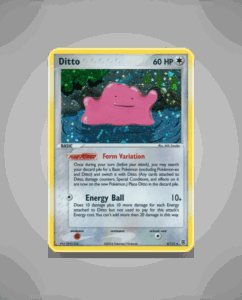 Ditto from the FireRed LeafGreen set is a Rare Holo card numbered 4. It features 60 HP and the unique ability Form Variation. Its attack is Energy Ball, making it a distinctive addition to any collection.