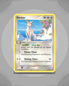 Persian from the FireRed LeafGreen set is an uncommon card featuring 80 HP. It boasts the ability Thick Skin and the attack Shining Claws. This sleek feline adds a distinctive presence to any collection.