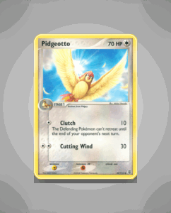 Pidgeotto from the FireRed LeafGreen set is an uncommon card numbered 45. It boasts 70 HP and features the attack Cutting Wind. This card offers a straightforward yet dynamic addition to any collection.